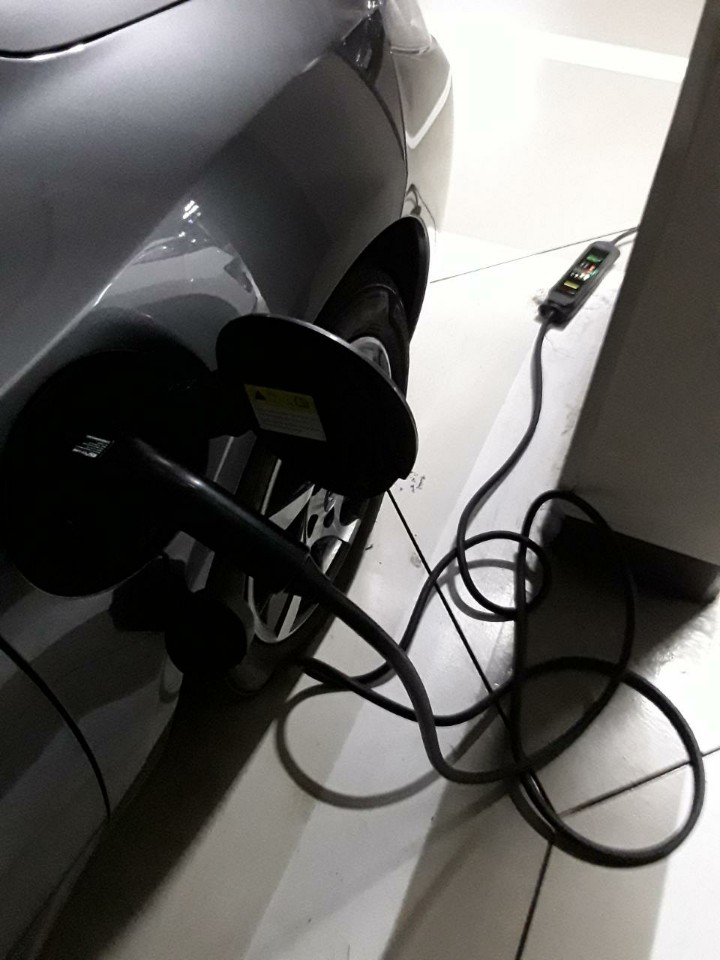 그리고 전기차 이동형 충전기를 연결했습니다.